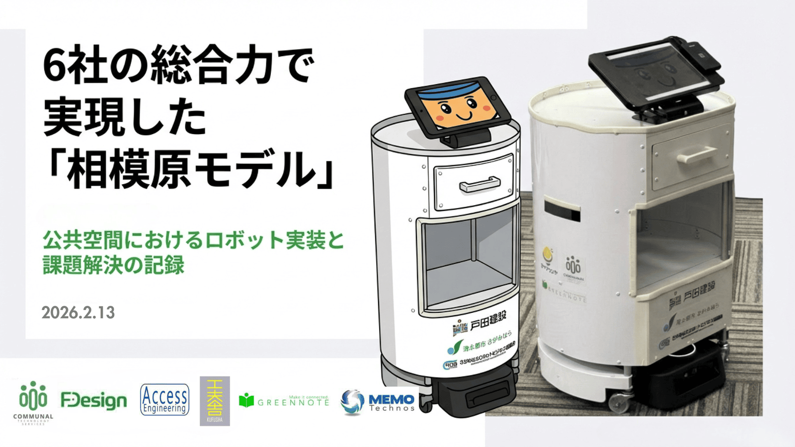 コミュナルテクノロジーサービス株式会社(本社:神奈川県相模原市)は、2026年2月13日より相模原市役所本庁舎にて開始されたロボット配送実証(実施主体:相模原市、戸田建設株式会社、さがみはらロボットビジネス協議会)において、「さがみはらロボットビジネス協議会」側のプロジェクトリーダーを務めるとともに、ロボットの「自律制御・AIオーケストレーション」を担当したことをお知らせいたします。
